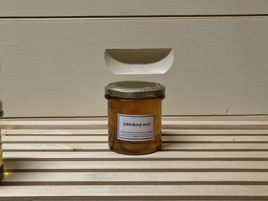 Květový med z oblasti jabloňových sadů stočený po odkvětu jabloní.